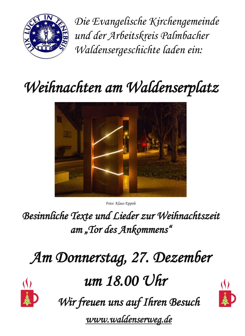 Wir freuen uns Sie bei besinnlichen Texten und Liedern zur Weihnachtszeit am beleuchteten Waldenserdenkmal begrüßen zu dürfen.