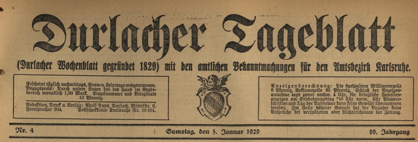 (Durlacher Tagblatt vom 06.01.1928):
